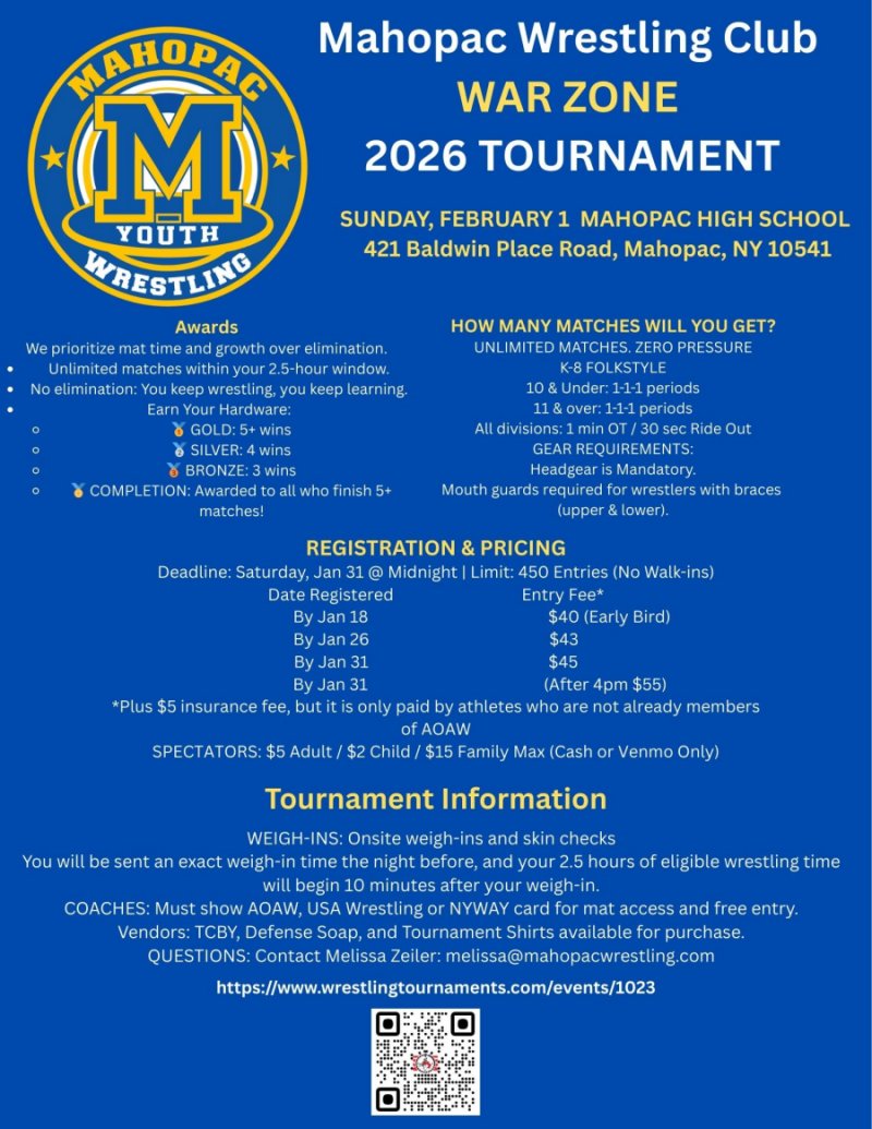 1 NY-USA Wrestling Suffolk and Long island Youth Championships at Bay Shore HS Mahopac War Zone Tournament at Mahopac HS |