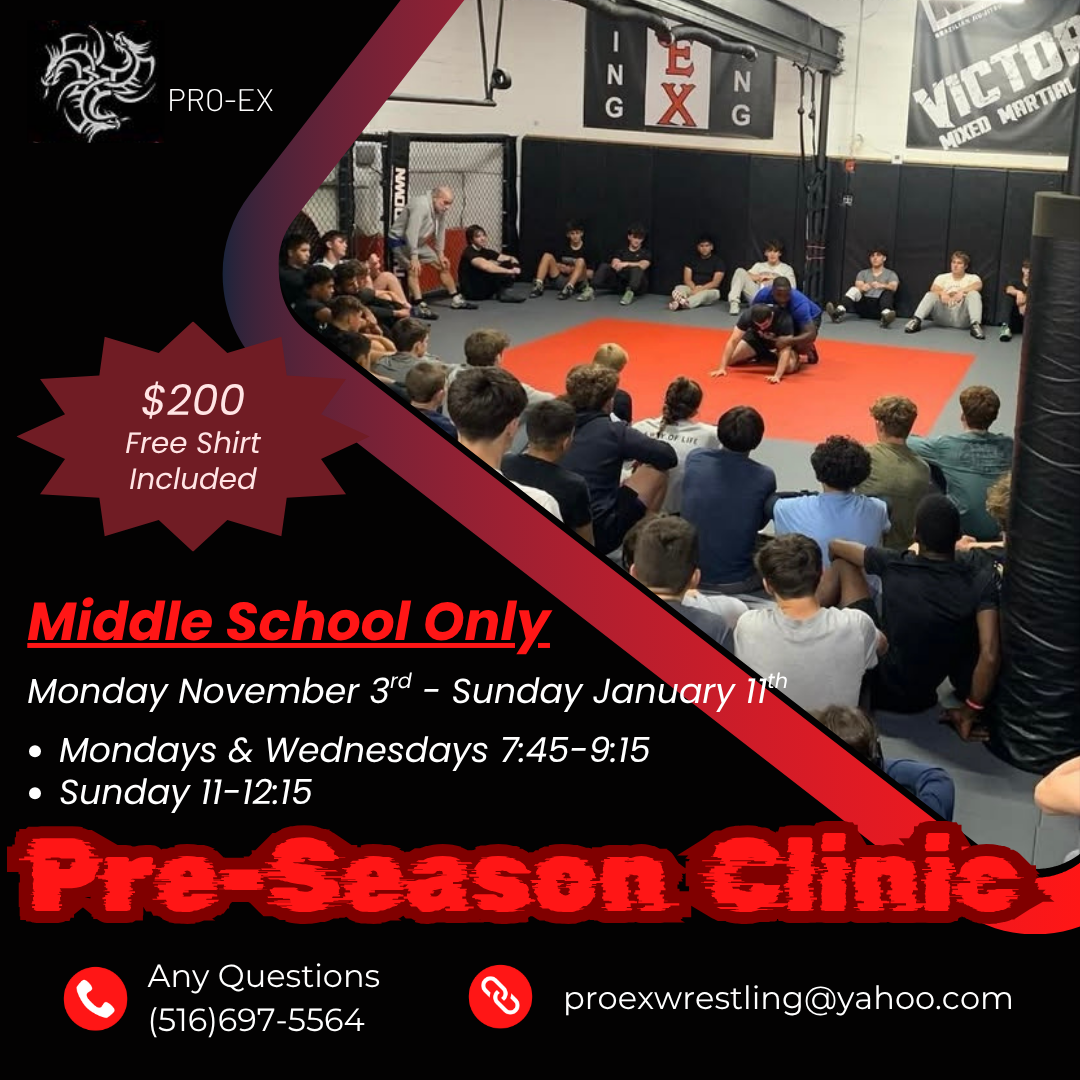 • ProEx Fall Clinic November 3-January 11, 2025 • Quiet Storm East Wrestling Club Fall Clinic - September 3-November 5, 2025