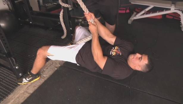 This is a great way to start athletes out. Have a partner anchor the wrestler with their feet. This exercise can be performed for reps or for time. This exercise can also be performed in a power rack if climbing ropes are not available to your team.